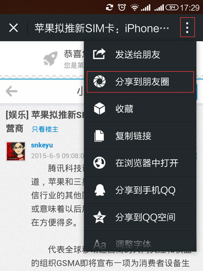 看到好的帖子想要分享到自己的朋友圈給大伙看看怎么辦呢?