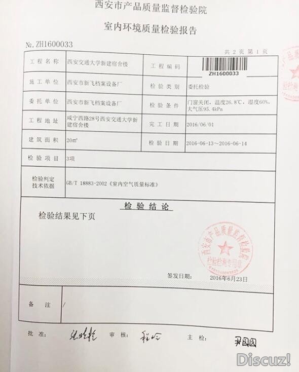 7月2日,學(xué)校已委托陜西省環(huán)境質(zhì)檢部門第三次對新宿舍室內(nèi)空氣環(huán)境進(jìn)行檢測。 外墻多彩,每一層都有洗衣機(jī)熱水器供水房,陽臺都配桌子供學(xué)生聊天喝茶……如此嶄新的宿舍樓,卻讓西安交通大學(xué)女研究生們紛紛搬離。 近日,有西安交大學(xué)生反映,興慶校區(qū)新建的3棟宿舍樓空氣環(huán)境中疑似甲醛等污染物超標(biāo),進(jìn)入后身體感到不適。而學(xué)校出具的環(huán)境質(zhì)檢報(bào)告,則存在檢測項(xiàng)目不全等問題。 7月6日,西安交大黨委宣傳部一名工作人員向澎湃新聞表示,2日學(xué)校已委托陜西省環(huán)境質(zhì)檢部門第三次對新宿舍室內(nèi)空氣環(huán)境進(jìn)行檢測,“由學(xué)生代表全程參與取樣過程,結(jié)果將于一周后出來。” 目前校方已建議入住學(xué)生暫時(shí)搬離,對于必須留校的學(xué)生,學(xué)校正在統(tǒng)一安排過渡宿舍。 超一半人搬離“彩虹閣” 為改善學(xué)生住宿環(huán)境,西安交通大學(xué)興慶校區(qū)新建了3棟回形宿舍樓,因外墻多彩,而被學(xué)生稱為“彩虹閣”。 據(jù)該校宿管科表示,“彩虹閣”于去年底完成封頂,今年三四月間完成裝修,接納對象為學(xué)校興慶校區(qū)2014級、2015級及2016級秋季入學(xué)的女碩士研究生。 7月1日,西安交通大學(xué)的一名女研究生王沁(化名)告訴澎湃新聞(www.thepaper.cn),她所在班的學(xué)生都于6月27日、28日陸續(xù)搬進(jìn)“彩虹閣”。王沁介紹,新宿舍一樓為公共浴室,配備電梯,衛(wèi)生間公用,宿舍結(jié)構(gòu)為上床下桌的四人間,家具為鋼木結(jié)構(gòu)。 王沁稱,27日進(jìn)入新宿舍樓大廳時(shí),聞到了一股濃濃的刺鼻氣味。“在宿舍內(nèi)還好,但宿舍柜子里的氣味超級嚴(yán)重。不知道是不是心理因素,覺得鼻子一直不舒服。”身感不適的王沁認(rèn)為新宿舍無法入住,于6月30日請假回家。 研究生一年級的陸遠(yuǎn)(化名)原本也應(yīng)該在6月底搬入“彩虹閣”。但出于對宿舍有毒物質(zhì)的擔(dān)心,7月2日,她花了189元在學(xué)校附近的快捷酒店住了一晚,并于第二天與導(dǎo)師協(xié)商暫時(shí)搬到了實(shí)驗(yàn)室。 7月2日,她向澎湃新聞表示,“超過一半的人都搬出新宿舍了,不是回家就是住教研室或?qū)嶒?yàn)室,再就是賓館酒店或校外租房。” 還有學(xué)生匿名在知乎上稱:“和舍友搬進(jìn)新宿舍,在里面收拾東西擦家具待了大約一個多小時(shí),開始覺得難受,鼻塞頭暈,室友說還有些辣眼睛。” 彩虹閣出了什么問題?是否存在家具甲醛超標(biāo)? 早在今年5月10日,西安交通大學(xué)研究生會認(rèn)證微信號發(fā)布的一篇名為《關(guān)于新宿舍樓“彩虹閣”,你可能想知道這些》的推文中,校宿管科曾對“甲醛是否超標(biāo)”一問有過正面答復(fù)。 文中宿管科表示,在家具方面,新宿舍樓采用木制+鋼架結(jié)構(gòu),且家具已做好存在庫房中,至少會空置一個月再投入使用;廠家方面,生產(chǎn)家具的廠家是校方從招標(biāo)的30多家單位中挑選出來的,學(xué)校曾到廠房和公司考察,因此不存在甲醛超標(biāo)問題;從建筑角度,建樓所使用的材料都必須符合要求,不合格的材料必不會采用。 此外,學(xué)校后期亦會采取使用活性炭、植物、通風(fēng)等措施除味。“搬入的時(shí)間是六月中旬左右,從即日起還有一個多月的空置時(shí)間,請大家不必?fù)?dān)心這個問題。” 西安市產(chǎn)品質(zhì)量監(jiān)督檢驗(yàn)院出具的檢驗(yàn)報(bào)告。 學(xué)生質(zhì)疑檢測報(bào)告,自檢超標(biāo) 6月27日,西安交大基本建設(shè)管理中心與后勤保障部發(fā)布了兩份“彩虹閣”的室內(nèi)環(huán)境質(zhì)量檢測報(bào)告。報(bào)告顯示,均符合室內(nèi)空氣污染物濃度限定。 其中,第一份質(zhì)檢報(bào)告由陜西省建筑設(shè)備安裝質(zhì)量檢測中心提供。校基建中心一姓李的工作人員向澎湃新聞表示,這份報(bào)告于5月12日-16日檢測,當(dāng)時(shí)宿舍內(nèi)完成了地磚地面、乳膠漆墻面及頂面裝修,但宿舍內(nèi)的家具還未搬入。 而第二份后勤保障部發(fā)布的質(zhì)檢報(bào)告則在家具搬入后檢測,由施工單位西安市新飛檔案設(shè)備廠委托西安市產(chǎn)品質(zhì)量監(jiān)督檢驗(yàn)院進(jìn)行。檢驗(yàn)項(xiàng)目分別為甲醛、總揮發(fā)性有機(jī)物、苯三項(xiàng),檢測結(jié)果合格。 6月30日,“西安交通大學(xué)兵馬俑BBS”在微信公眾平臺發(fā)布《關(guān)愛女碩健康|彩虹樓還是甲醛樓?》一文。其中有網(wǎng)友針對質(zhì)檢報(bào)告提出了質(zhì)疑。例如,為什么檢測項(xiàng)目不全,少了通常涵蓋的氨和氡的檢測? 在兩份報(bào)告發(fā)布后,有學(xué)生開始了自行檢測,還有學(xué)生提議眾籌自行請第三方檢測。 6月27日,王沁的一位同學(xué)花70元從網(wǎng)店購買了一種名為“格瑞衛(wèi)康甲醛速測靈”的甲醛檢測試紙?jiān)谒奚釡y試,結(jié)果顯示空氣中甲醛含量大約在0.2mg/m 3 到0.4mg/ m 3 左右,而國家規(guī)定的甲醛含量限值是0.1mg/ m 3 。 也有學(xué)生在校內(nèi)BBS上發(fā)帖表示,自己用阿格瑞斯WP6110家用室內(nèi)室外空氣質(zhì)量檢測儀對15樓一間宿舍進(jìn)行測試。結(jié)果顯示,宿舍桌面上的空氣甲醛含量為0.29mg/ m 3 ,宿舍柜子中空氣甲醛含量